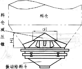 慣性振動(dòng)給料斗在設(shè)計(jì)計(jì)算中已考慮了一定的倉壓,但建議在料倉內(nèi)物料高度大于2m時(shí),在料倉內(nèi)安裝料倉減壓錐,以確保振動(dòng)給料斗更穩(wěn)定地工作,特別是確保其給料精度更趨準(zhǔn)確。料倉減壓錐應(yīng)焊接在料倉內(nèi),并保持平穩(wěn)。料倉減壓錐安裝圖,安裝尺寸如下: