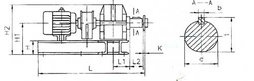 驅(qū)動(dòng)裝置 | 電動(dòng)機(jī) | 減速器 型 號(hào) | A | B | C | D | E | n-d1 | H | H1 | H1 | K | L | L1 | L2 | B1 | B2 | b | t | d | 重量 kg | |