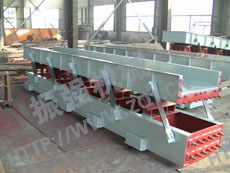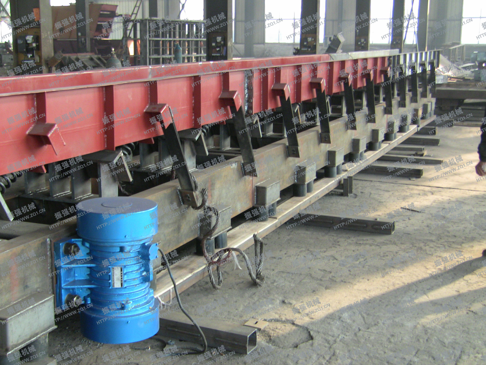 - SZF型慣性振動輸送機采用兩臺振動電機作為激振動源,運用自同步原理,兩臺振動電機反向轉動,使輸送機底部平衡架產(chǎn)生往復振動,經(jīng)過主振簧與導向板簧的作用,帶動上部輸送槽振動,從而達到輸送物料的目的。該機是一種通用輸送機械,除用于水泥行業(yè)外,還可用于冶金、礦山、化工、電力等行業(yè),是一種理想的新型輸送設備。